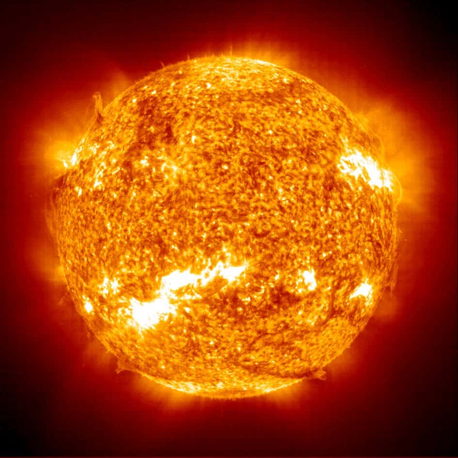 Nessa temperatura quaquer coisa libera energia na forma de luz e calor. Por isso, temos a impressão que o Sol é feito de fogo.